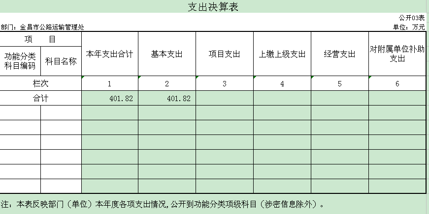 ??? 2016年度本年支出合计 401.82 万元,本年支出全部是基本支出部分,具体情况如下: