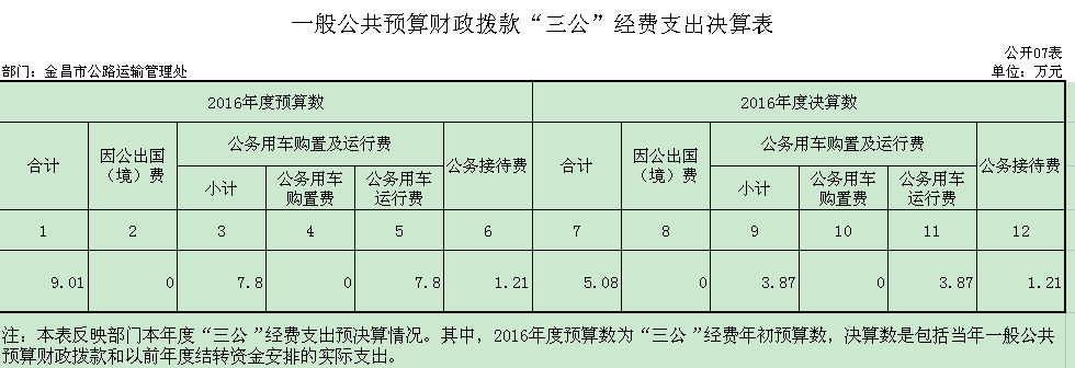 “三公”经费:纳入中央财政预决算管理的“三公”经费,是指中央部门用财政拨款安排的因公出国(境)费、公务用车购置及运行费和公务接待 费。其中,因公出国(境)费反映单位公务出国(境)的国际旅费、国外城市间交通费、住宿费、伙食费、培训费、公杂费等支出;公务用车购置及运行费反映单位 公务用车车辆购置支出(含车辆购置税)及租用费、燃料费、维修费、过路过桥费、保险费、安全奖励费用等支出;公务接待费反映单位按规定开支的各类公务接待 (含外宾接待)支出。
