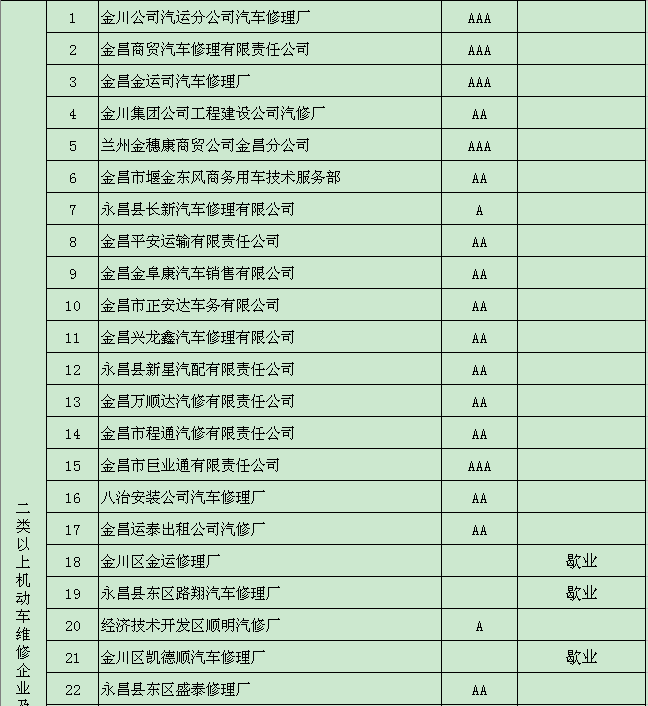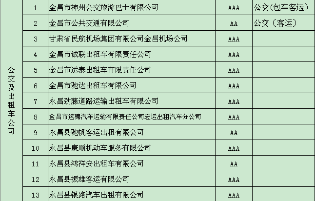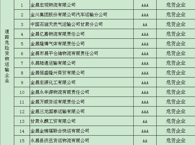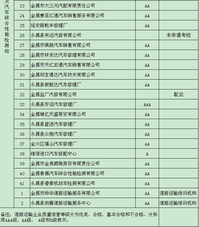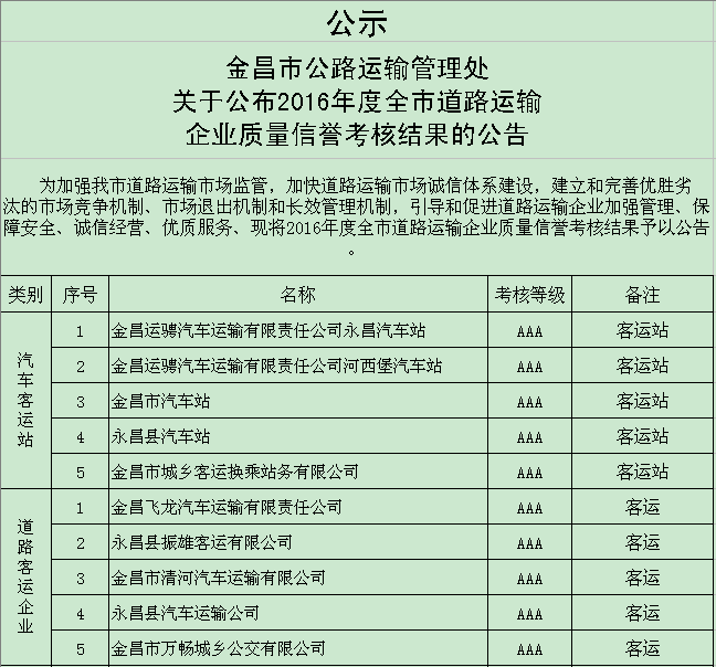 金昌市公路运输管理处关于公布2016年度全市道路运输企业质量信誉考核结果的公告